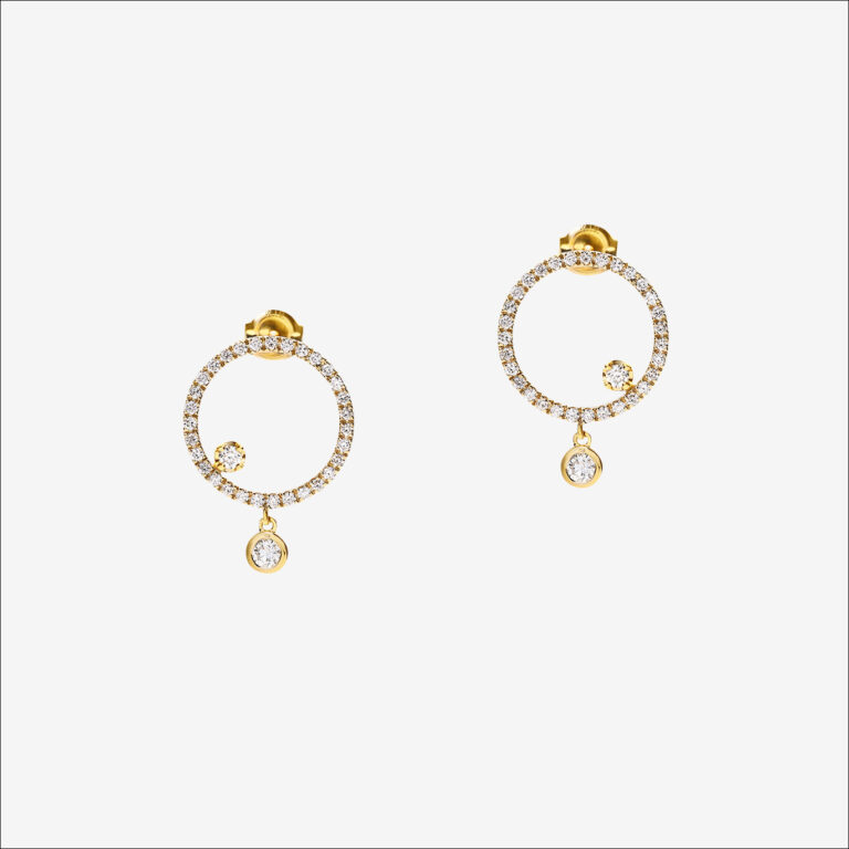 贅沢なパヴェセッティングと揺れるダイヤで、上質な輝きを楽しめるピアス。